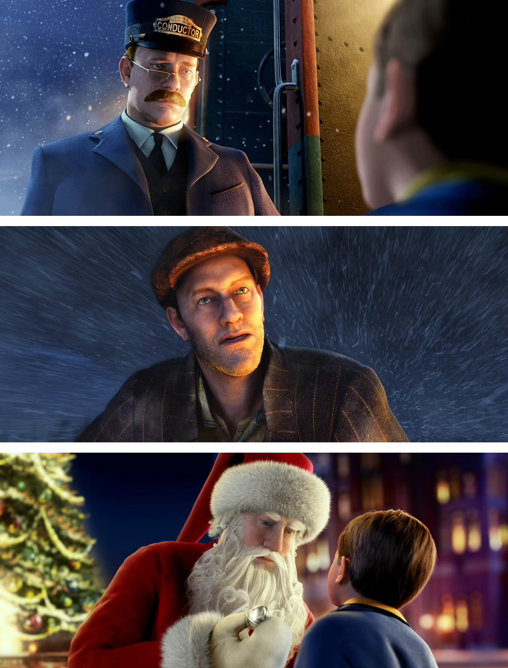 In The Polar Express (2004), Tom Hanks is basically God. This is not an exaggeration. The actor voices three characters: Santa, the Conductor, and the train-hopping Hobo catching a ride. A popular theory holds that each of these characters represents a person of the Christian Trinity: Santa the Father, Conductor the Son, and Hobo the Holy Spirit.