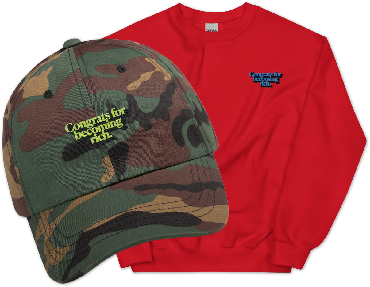 💰 Travis runs a design / branding company called BOAISY. He makes hats and sweatshirts embroidered with the enigmatic phrase “Congrats for becoming rich” which is one way to translate the Lunar New Year saying 恭喜发财. Order one for a friend at boaisy.com, where you can find the rest of Travis’s work (and maybe commission him to design your next book cover).