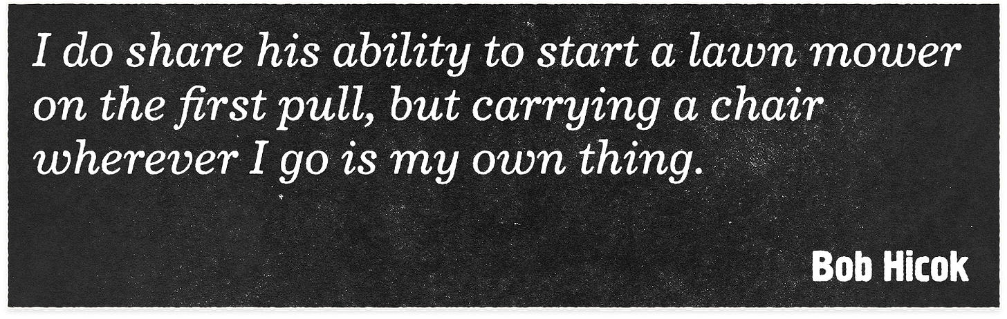 I do share his ability to start a lawn mower