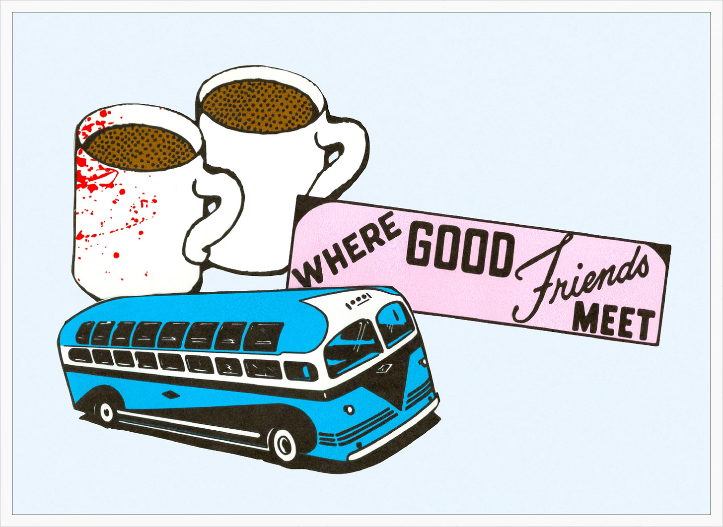 I slam my forehead into the table. “Excuse me!” I call out. “Can a guy get some service around here? I think I’m going to go with the chicken fried steak! And a coffee!” I turn and look out the window again. A whole crowd, strobing in the red and blue flashing lights, stares back. I can’t be sure, but I think I see Bill out there.