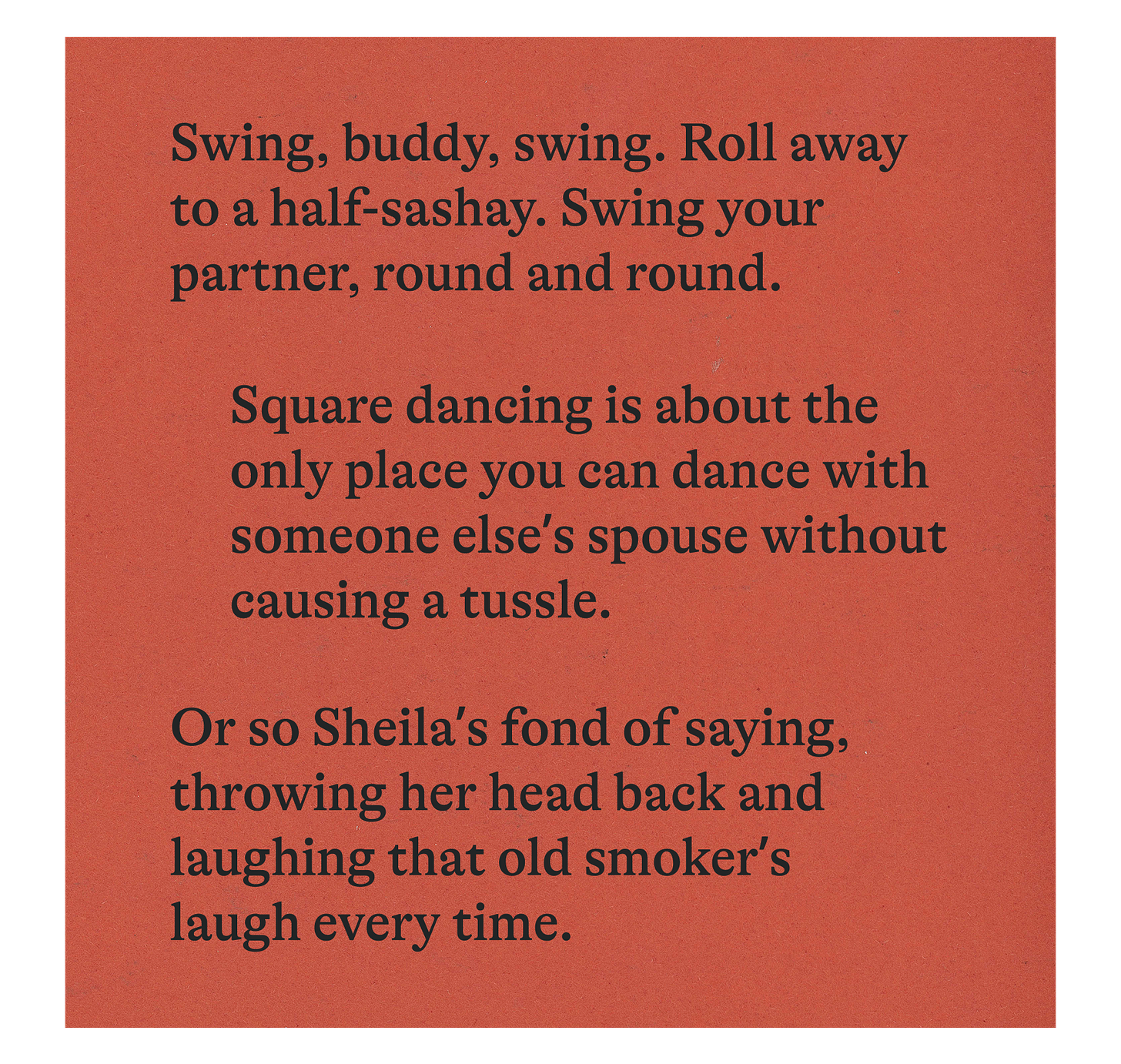 Sometimes, though, I wonder what some of these old timers might say if I were to bring it up. They seen some things in their day, no question; Gerard and Sheila, Bill and Judy. Whoever. Might make some wild conversation. But I don’t say nothing about it. Not any of it. Instead, we just talk square dancing. Probably better that way.